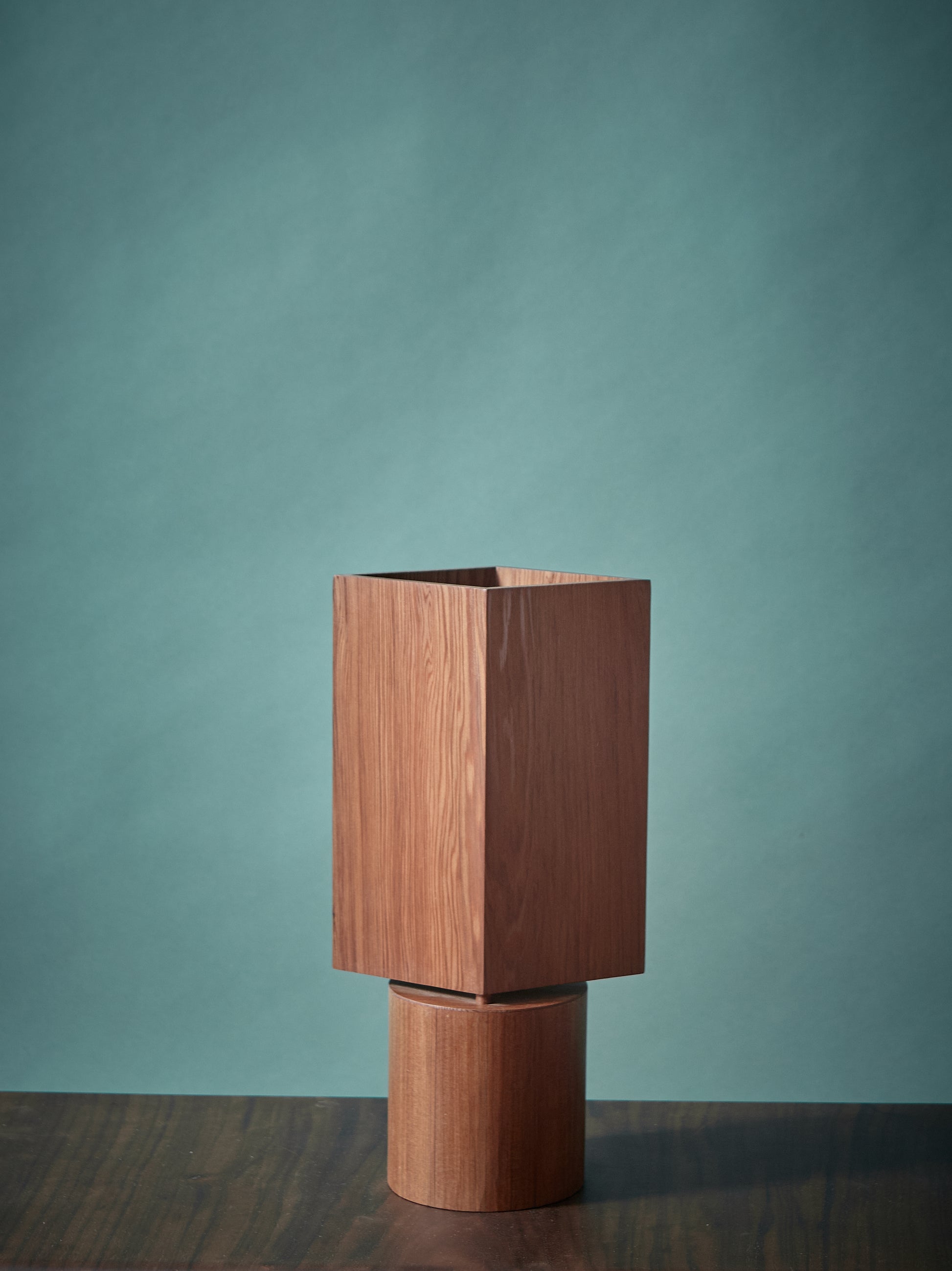 Each lamp is made entirely by hand and can be produced in any domestic hardwood, allowing the character of the wood itself to guide the final piece. Grain direction, seams, and transitions are left legible, giving the lamp an honest, architectural presence whether illuminated or at rest.